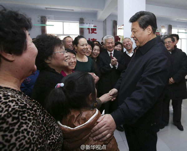 新华网北京1月27日电 据新华社“新华视点”微博报道,习近平27日上午到锡林浩特爱民社区看望群众。“我是北京知青。”68年到这里下乡的罗香玲挤上前,热情同总书记打招呼。见到“北京老乡”,总书记同她热情握手:“咱们都是老知青。当时我在陕北,几个月吃不上肉,很羡慕牧区有羊肉吃。咱们是老乡见老乡,两眼泪汪汪。”