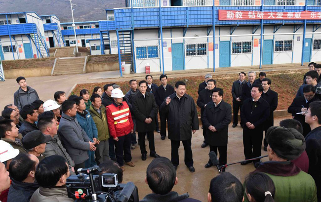在板房学校,总书记对围拢来的干部群众说,地震带来重大损失,很多人失去亲人,我和你们一样难过。震后,我一直牵挂着你们:安置好没?能不能吃上一口热饭?孩子有没有学上?生病能不能治疗?现在我特别关心你们越冬和灾后重建情况,能不能尽早搬进新居?
