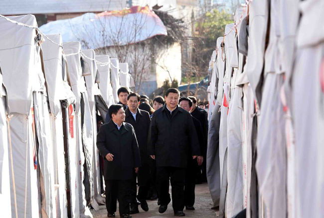 习近平安置点帐篷摸棉被:“暖和不暖和?