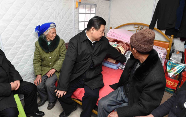习近平察看鲁甸地震遗址