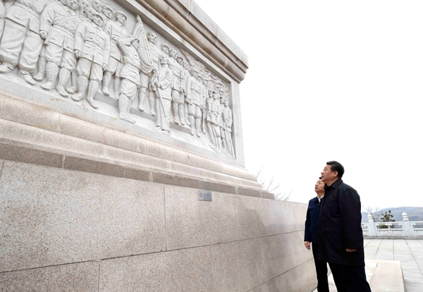 14日下午,习近平来到陕西铜川市照金镇,向陕甘边革命根据地英雄纪念碑敬献花篮并参观纪念馆。