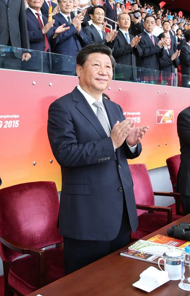 8月22日,国家主席习近平在国家体育场出席2015年北京国际田联世界田径锦标赛开幕式并宣布锦标赛开幕。新华社记者 黄敬文 摄