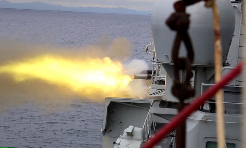 对漂雷靶进行射击