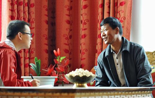 这是西藏林芝市巴宜区巴吉村村民格桑旺久(右)接受新华社记者采访(9月25日摄)。2011年7月西藏和平解放60周年庆祝活动时,习近平同志曾到其家中看望。多年来,他不仅自身创业致富,而且带领群众脱贫致富奔小康。新华社记者张汝锋 摄