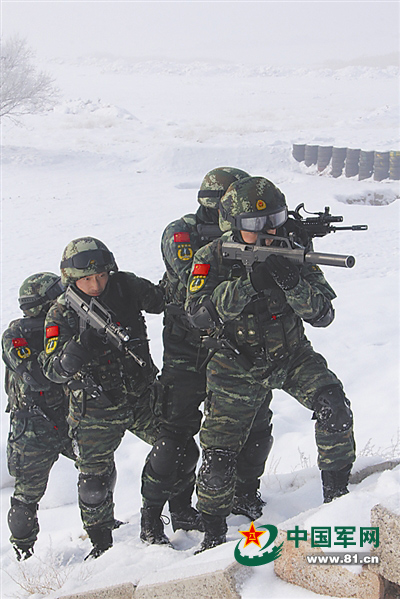 今天,记者踏着冰雪,在武警新疆总队训练基地综合训练场,目睹了节后第一天战术训练的火热场面。