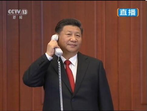 通话结束后,习近平来到指挥中心现场参试人员中间,同大家亲切握手,致以问候。