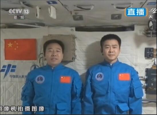 景海鹏:感谢总书记关怀!我们的身体很好,各项工作进展得也很顺利。我们还能在太空同步收看新闻联播,图像很流畅、很清晰。看到总书记在党的十八届六中全会上的画面,我们感到很亲切、很振奋。中国载人航天进入了新的高度,中国航天员在太空的工作生活条件更加完善,我们为伟大祖国感到骄傲和自豪!