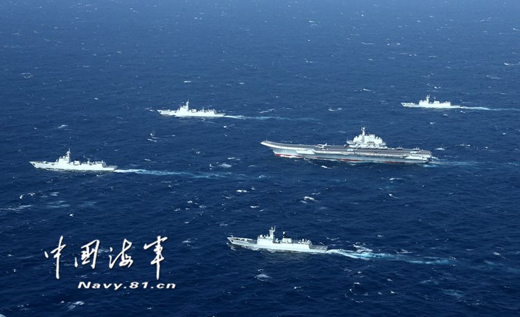 中国海军航母编队在海上航行。