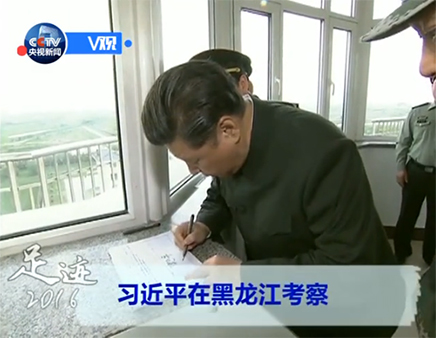2016年5月24日、25日,习近平亲切看望慰问驻黑龙江部队,代表党中央和中央军委向广大官兵致以诚挚的问候。习近平步行前往东极哨所,登上30米高的哨楼,察看执勤设施,询问执勤情况,同正在执勤的哨兵交谈。他走进战士宿舍,边看边问,对基层官兵生活十分关心。