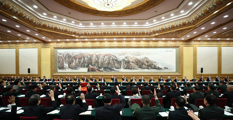 10月17日,中国共产党第十九次全国代表大会主席团在北京人民大会堂举行第一次会议。新华社记者 兰红光 摄
