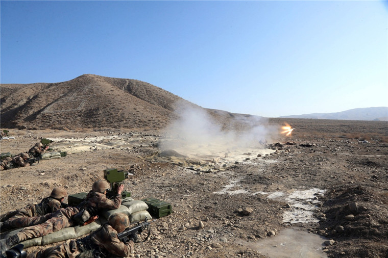 陆军第76集团军某旅合成二营火力连利用反坦克导弹对“敌”目标点实施摧毁(1月4日摄)。新华社发(李忠元 摄)