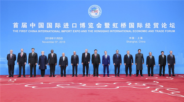 11月初的上海,风清气爽,秋意渐浓。上海国家会展中心开幕式主会场内,各国嘉宾齐聚一堂。上午9时45分许,习近平同捷克总统泽曼、多米尼加总统梅迪纳、萨尔瓦多总统桑切斯、肯尼亚总统肯雅塔、立陶宛总统格里包斯凯特、克罗地亚总理普连科维奇、埃及总理马德布利、格鲁吉亚总理巴赫塔泽、匈牙利总理欧尔班、老挝总理通伦、马耳他总理穆斯卡特、巴基斯坦总理伊姆兰·汗、俄罗斯总理梅德韦杰夫、越南总理阮春福、英国约克公爵安德鲁王子、国际货币基金组织总裁拉加德、世界银行行长金墉、世界贸易组织总干事阿泽维多等外方领导人一同步入会场。