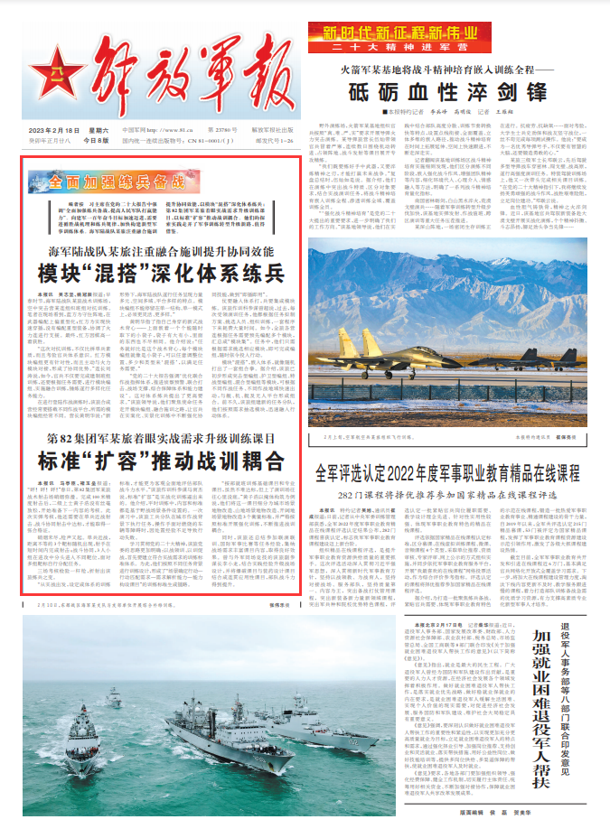 编者按 习主席在党的二十大报告中强调“全面加强练兵备战,提高人民军队打赢能力”。向建军一百年奋斗目标加速迈进,需要遵循胜战机理和练兵规律,加快构建新型军事训练体系。海军陆战队某旅注重融合施训提升协同效能,以模块“混搭”深化体系练兵;第82集团军某旅着眼实战需求升级训练课目,以标准“扩容”推动战训耦合。他们的探索实践走开了军事训练转型升级新路,值得借鉴。