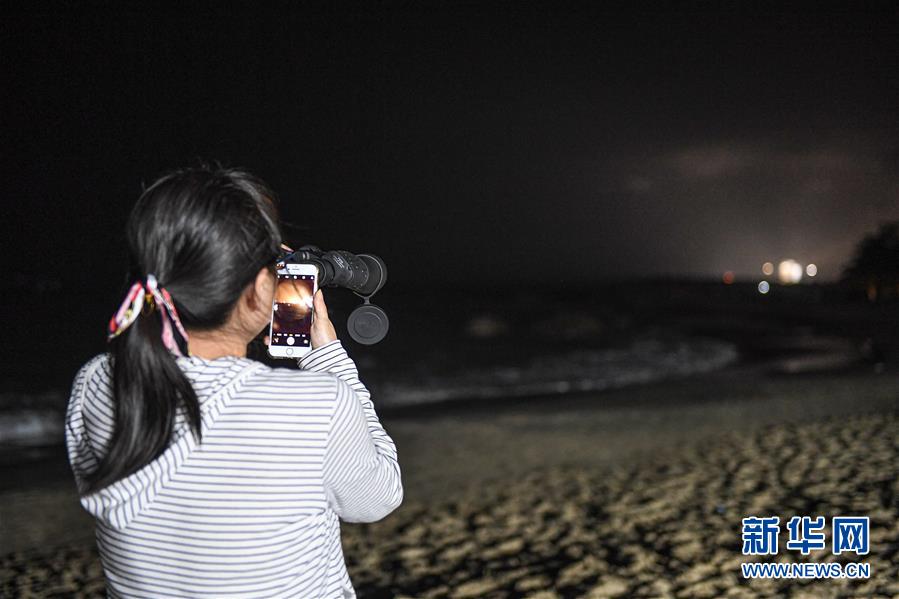 3月11日夜,人们在海南文昌一处海滩等待观看长征七号改遥二运载火箭发射。 新华社记者 蒲晓旭 摄