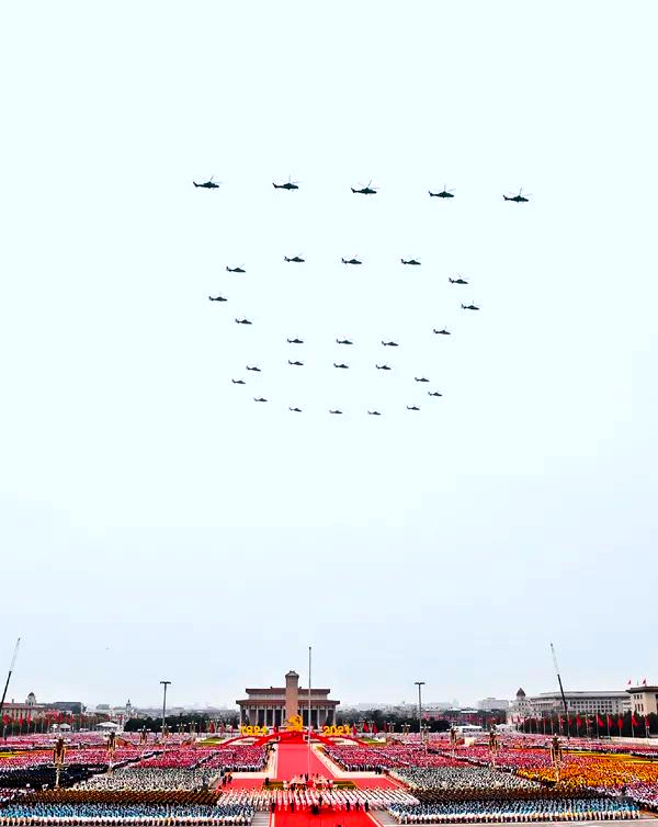 这天清晨,15架歼-20战机分3个梯队,呼啸飞过天安门。29架新型武装直升机组成的“100”字样,引起人们忘情的欢呼、无限的畅想。