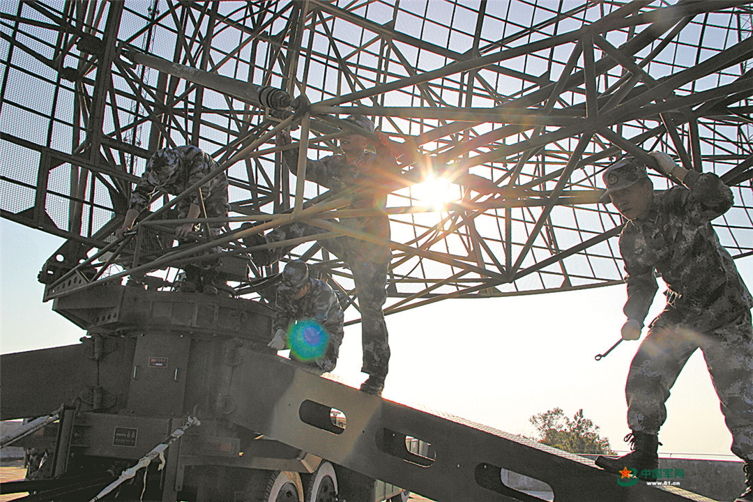 “接上级通报,有‘敌’机从我空域经过,迅速展开搜索。”傍晚时分,随着一道紧急命令下达,空军雷达某旅机动分队官兵奔赴战位,打响一场实战化对抗演练。架设天线,开启雷达……很快,官兵在海空之间织就一张电磁天网。