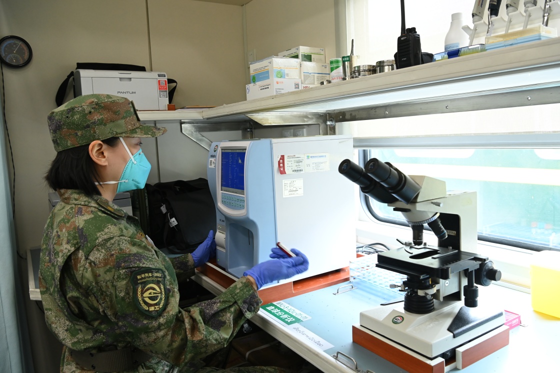 7月22日,检验技师在卫生列车医技保障工作区开展生化免疫检测演练。新华社发(曾理摄)
