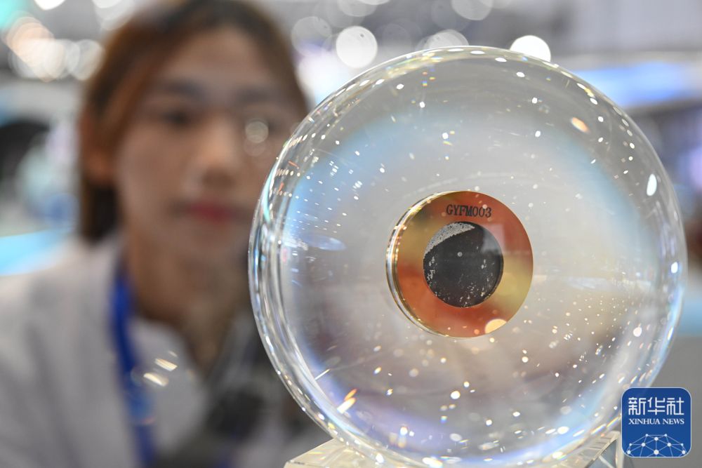 4月24日,观众在2023年“中国航天日”科普展览上观察月壤。新华社记者 黄博涵 摄