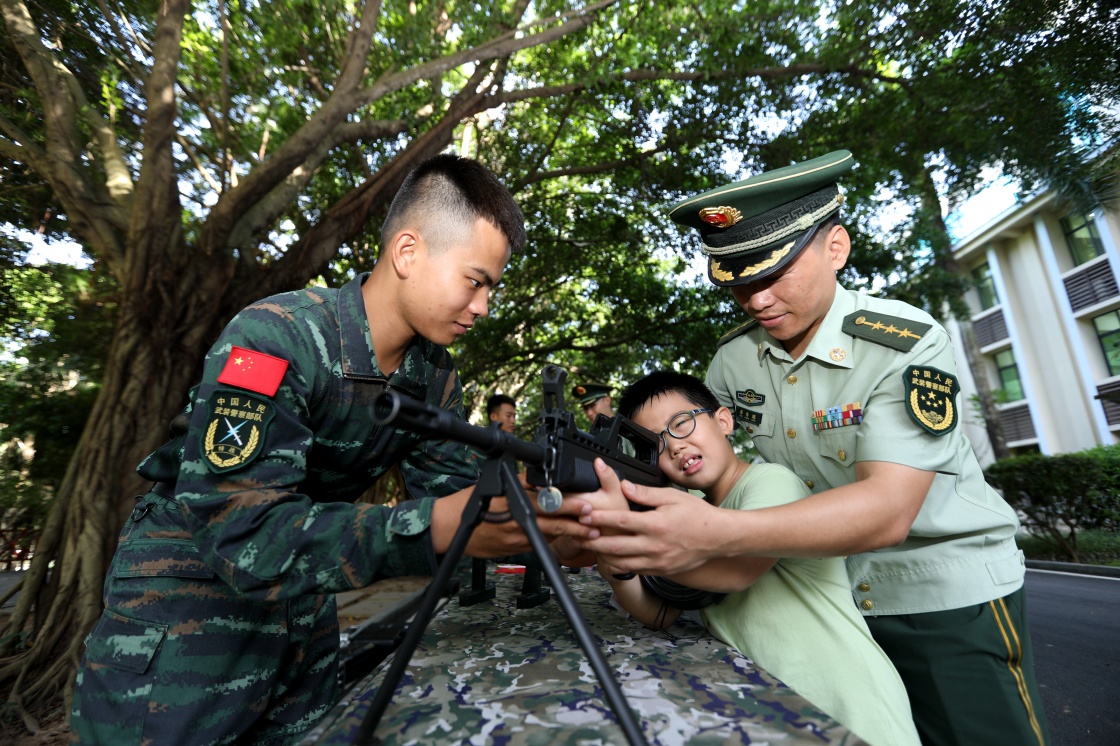 武警海南总队三亚支队开展“军嫂萌娃进军营”主题活动,邀请百余名军属走进营区“零距离”体验(7月30日摄)。