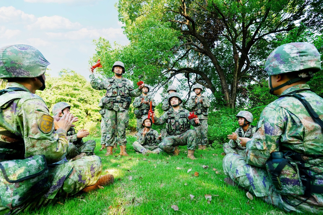 联勤保障部队驻闽某部“快板宣传小分队”成员在演练间隙利用自创编排的节目为战友们送去节日祝福(7月30日摄)。