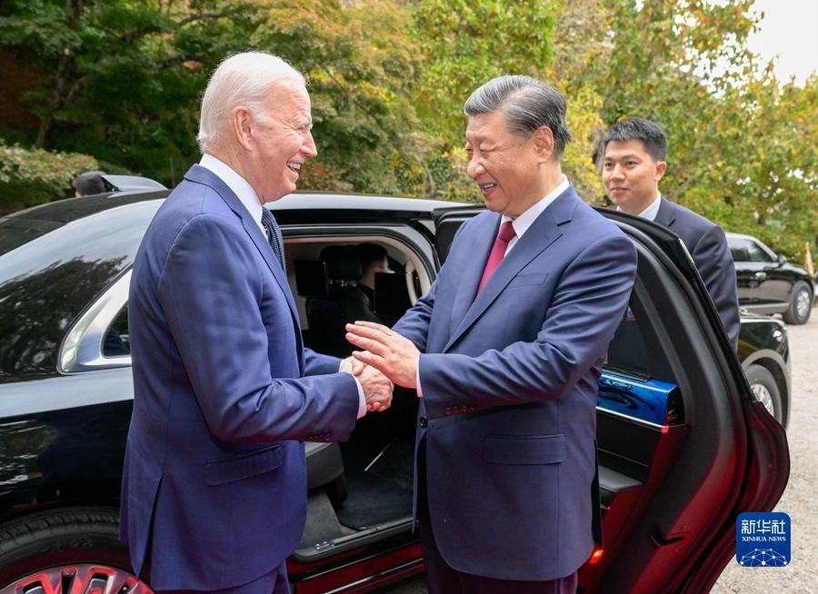 当地时间11月15日,国家主席习近平同美国总统拜登在斐洛里庄园举行中美元首会晤。这是会谈后,拜登亲自将习近平送到上车处道别。新华社记者 李学仁 摄