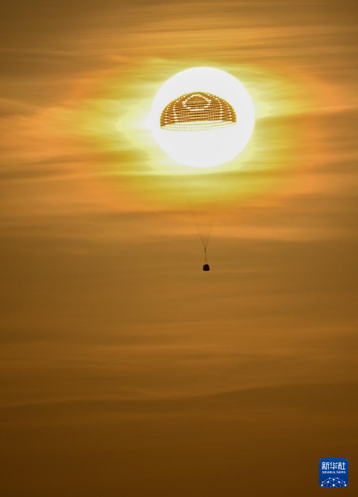 2023年6月4日,神舟十五号载人飞船返回舱在东风着陆场成功着陆。