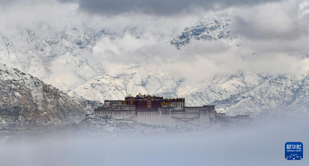 2023年3月30日从西藏拉萨南山公园拍摄的雪后布达拉宫。