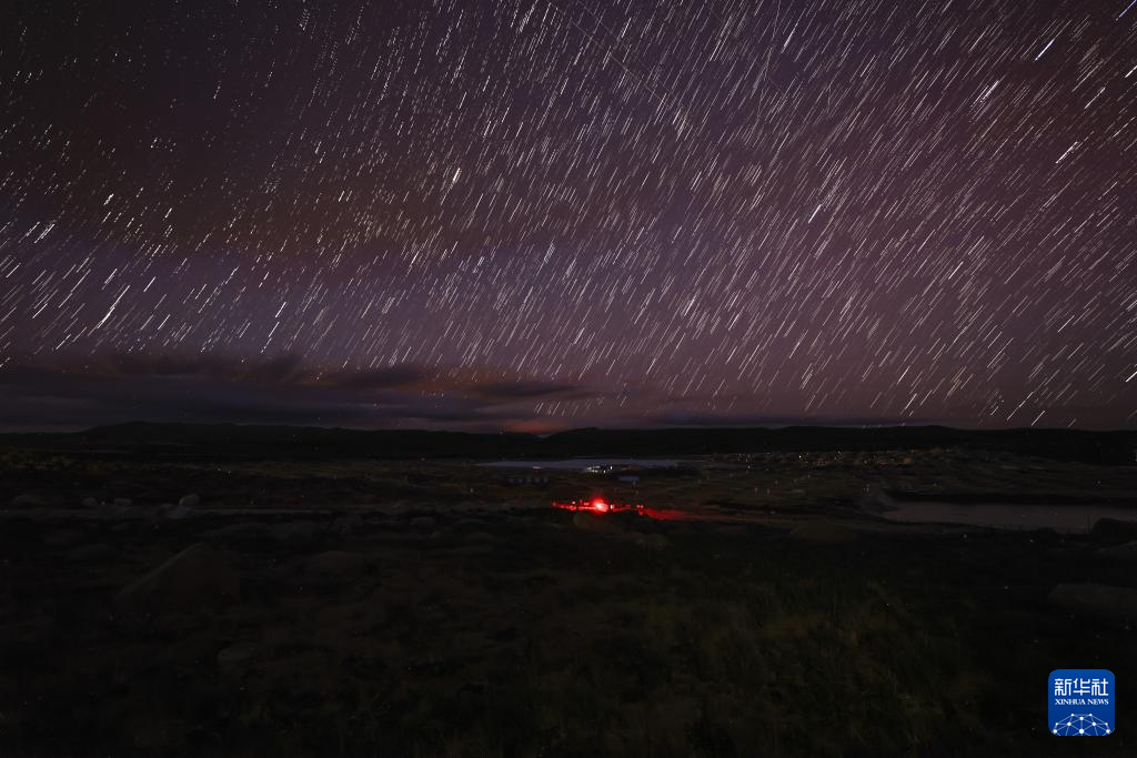 2023年4月21日晚拍摄的星空下的高海拔宇宙线观测站“拉索”(合成照片)。科学家利用我国高海拔宇宙线观测站“拉索”(LHAASO),精确测量了迄今最亮伽马暴GRB 221009A的高能辐射能谱,并据此获得了对伽马暴的全新认知。