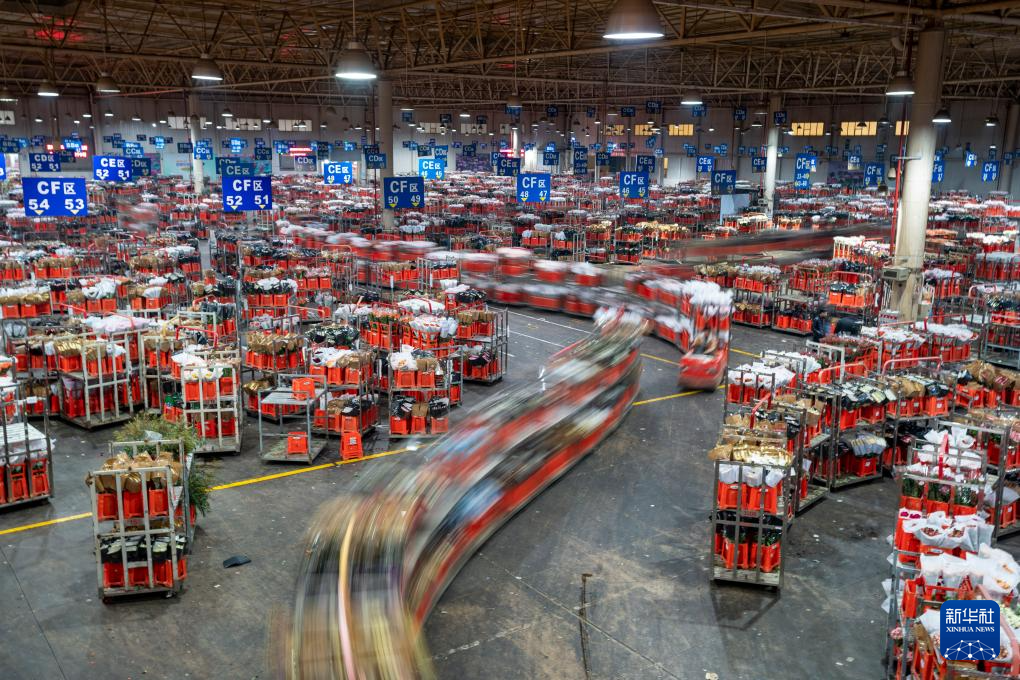 2023年1月31日,台车在昆明国际花卉拍卖交易中心运输鲜花。近年来,随着斗南花市鲜花加工、交易、物流体系不断完善,鲜花年销售数量和年销售额双双突破“百亿”目标,作为亚洲最大的鲜切花交易市场,这里已成为我国鲜切花交易的“风向标”“晴雨表”。