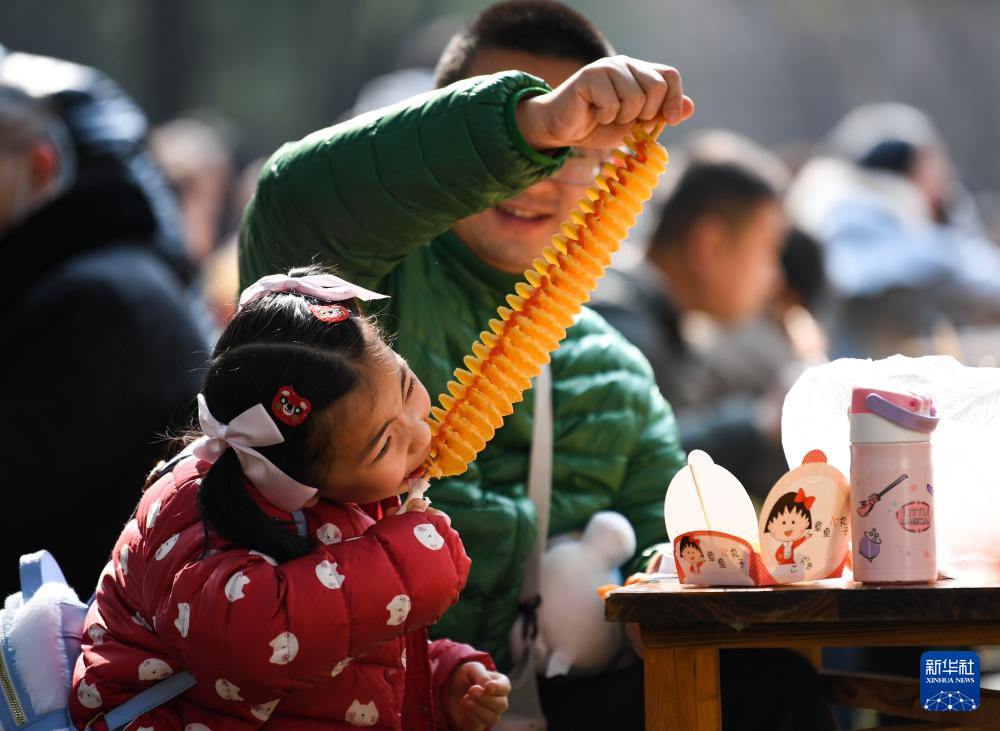 2023年1月23日,在四川成都街头,一对父女在享用美食。