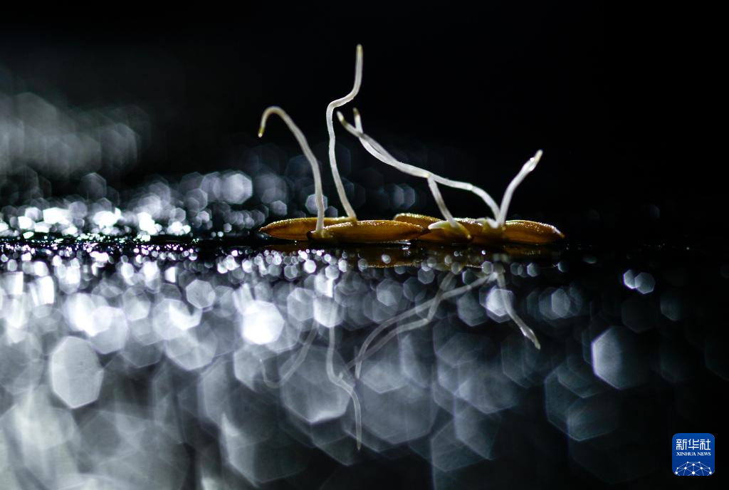 2023年4月6日在贵州省岑巩县水尾镇一杂交水稻种植大户家拍摄的已经发芽、准备用于育苗的杂交水稻种子。近年来,当地将杂交水稻制种产业作为主导产业来抓,带动周边农民就业增收,助力乡村种业振兴。
