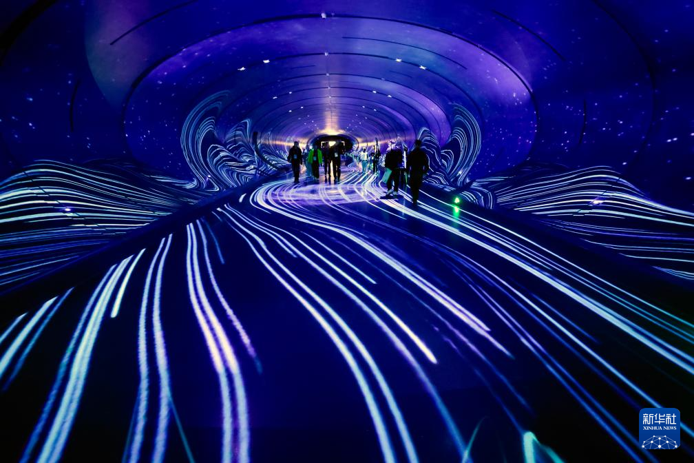 2023年10月18日,人们穿过第81届世界科幻大会主场馆——成都科幻馆内的“时空隧道”。当日,第81届世界科幻大会在成都开幕,这是这一世界性科幻文化主题活动首次走进中国。