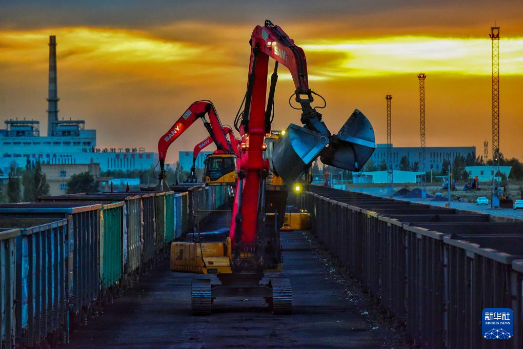 2023年9月6日,在新疆霍尔果斯站换装库,抓料机进行换装作业。目前,经霍尔果斯铁路口岸通行中欧(中亚)班列数量累计超过3.2万列,班列开行线路累计达80条,辐射境外18个国家、45个城市和地区。