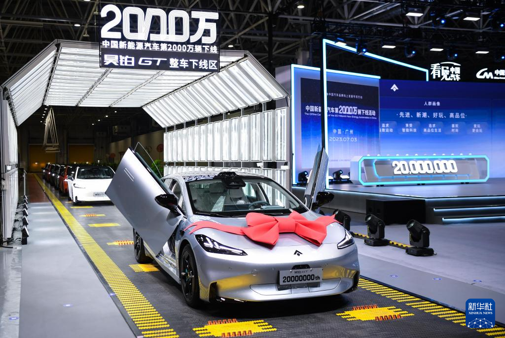 2023年7月3日,中国新能源汽车第2000万辆下线活动在广州广汽埃安第一智造中心举行,这是作为中国第2000万辆下线的新能源汽车的昊铂GT。