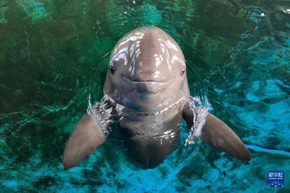 2023年7月5日,世界第一头在全人工环境中成功繁育的长江江豚“淘淘”迎来18岁生日。这是在中科院水生所白鱀豚馆,“淘淘”在水中游动。