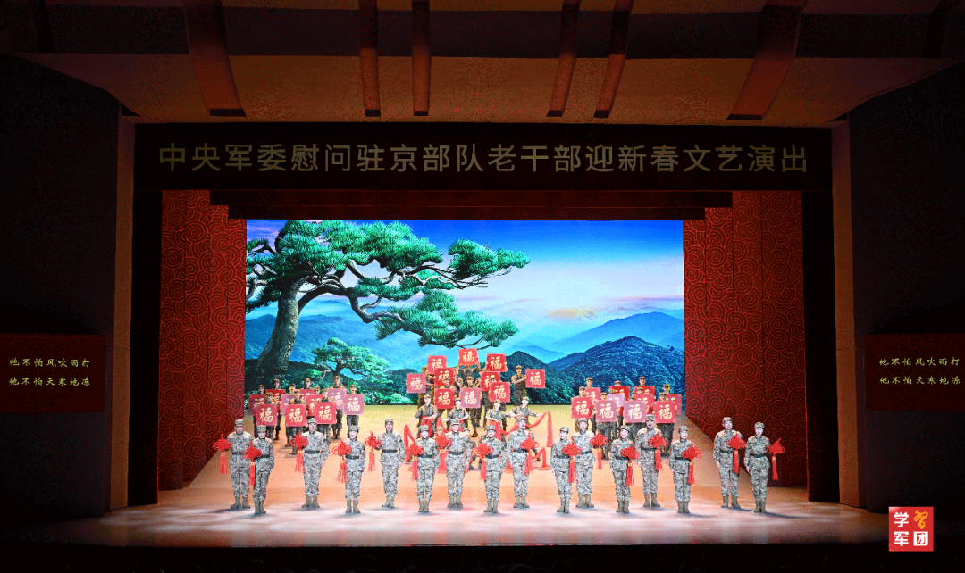 1月29日下午,中央军委慰问驻京部队老干部迎新春文艺演出在京举行。习主席观看演出,向在座的军队老同志和全军离退休老干部致以节日问候和新春祝福。
