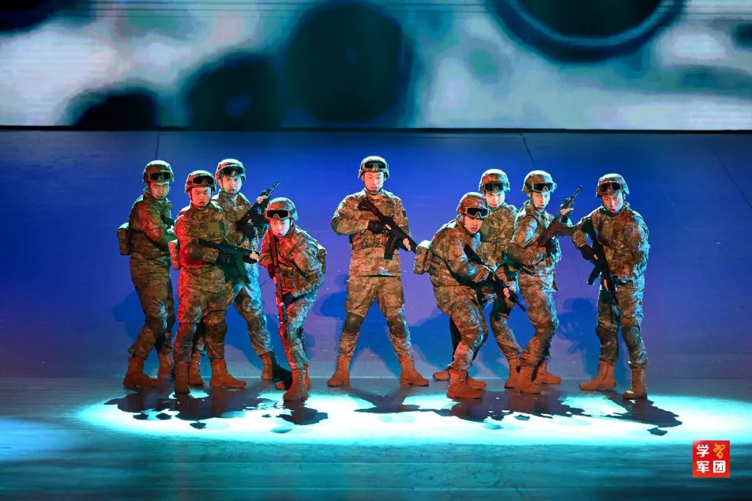 情景表演唱《追光》,热情讴歌思想照耀前程、奋斗开创未来的壮阔实践,鲜明表达在党的旗帜下铸牢军魂的决心意志。