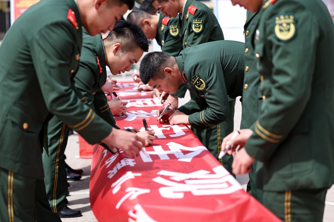 4月12日,武警甘肃总队兰州支队组织官兵开展全民国家安全教育日主题签名活动。