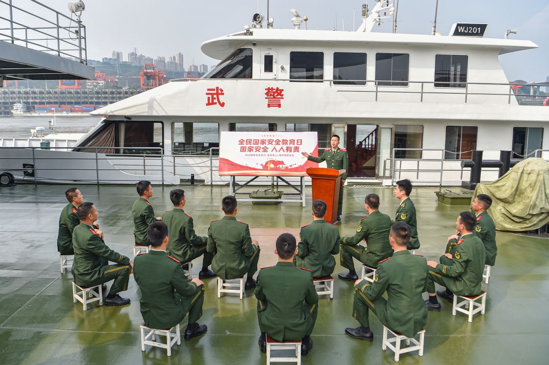 4月12日,武警重庆总队某支队开展全民国家安全教育日宣传活动,理论骨干讲解国家安全知识。