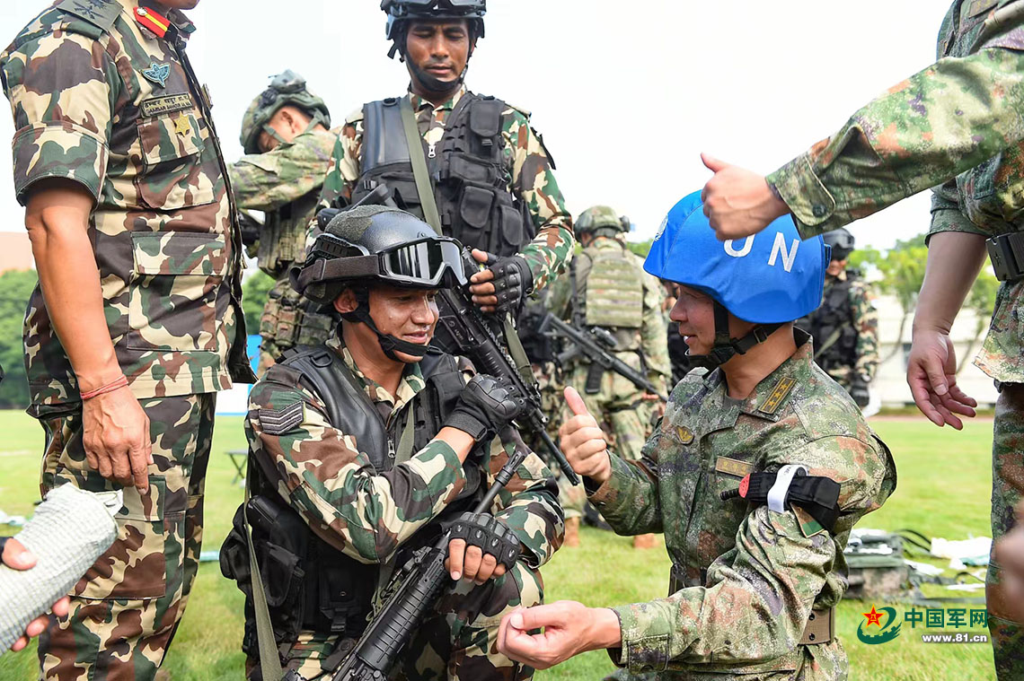 这是中尼双方参训官兵混编作业的一幕。在装备展示后,参训人员采取混合编组、轮换作业的方式,分别对相关设备进行联训交流。