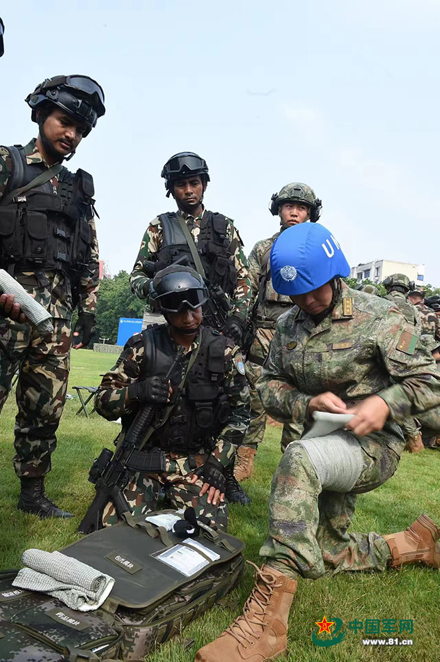 快速抢救伤员生命,是所有灾难中救援人员的首要职责。来自中方某医院的主任医师苏正林,曾参加过多个大项任务,经验十分丰富。这次维和医疗行动展演中,他所带领的教练组通过实景构设、随机导调等方式就“头部外伤、胸部外伤、腹部外伤、上肢骨折、下肢骨折”等5种常见战伤向中尼参训官兵进行初级生命支持教学。