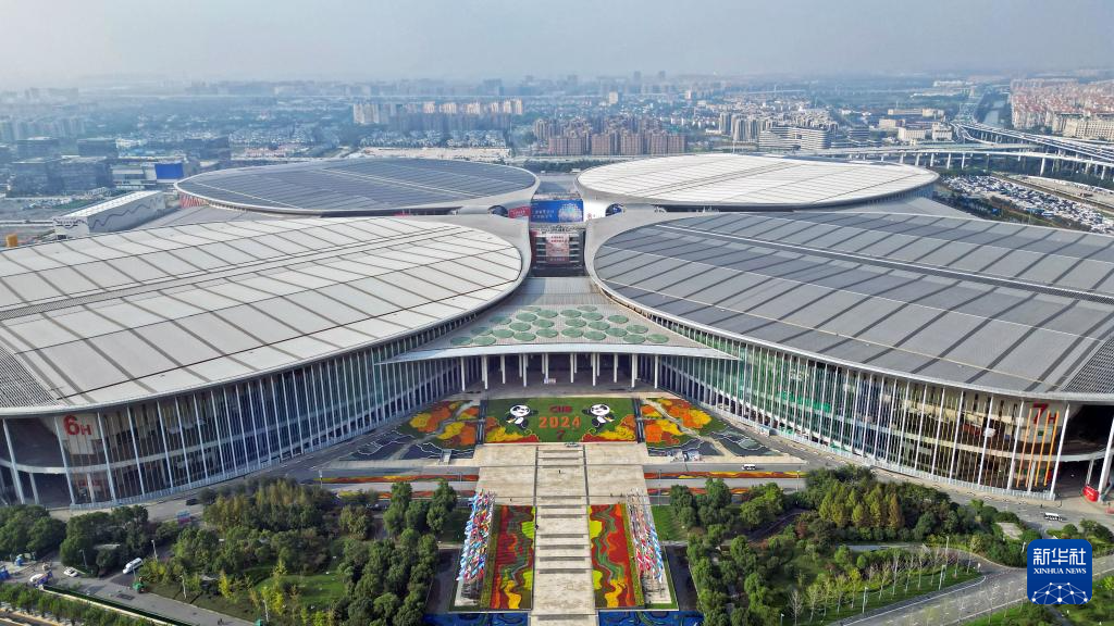 11月2日拍摄的国家会展中心(上海)西入口(无人机全景照片)。