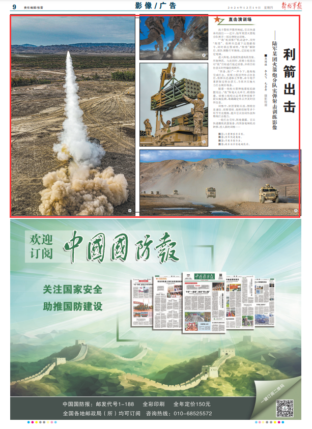 随着一枚枚火箭弹拖着尾焰破膛而出,“敌”阵地火光冲天、硝烟弥漫。侦察小组综合运用多种侦察手段实施监测,准确确定炸点并及时回传信息。