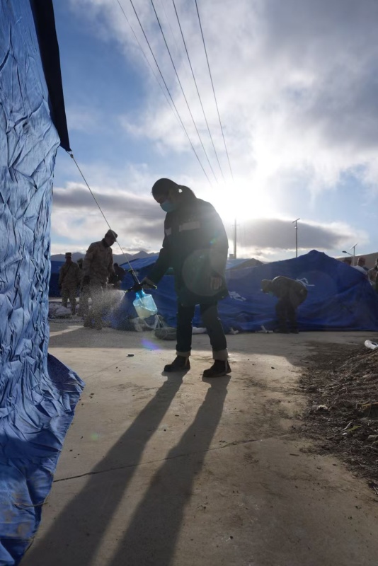 1月7日,在定日县长所乡古荣村,工作人员进行消杀作业。新华社记者 晋美多吉 摄