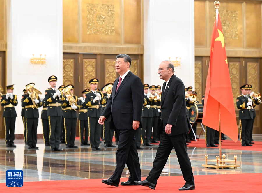 会谈前,习近平在人民大会堂北大厅为扎尔达里举行欢迎仪式。