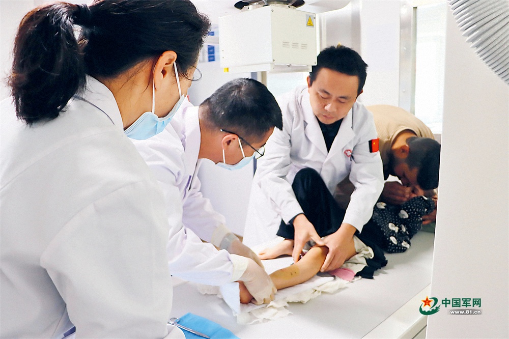中国军医对小女孩进行诊治。杨瑞鑫 摄