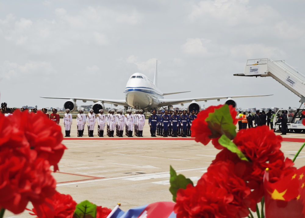 国家主席习近平抵达金边,开始对柬埔寨进行国事访问。