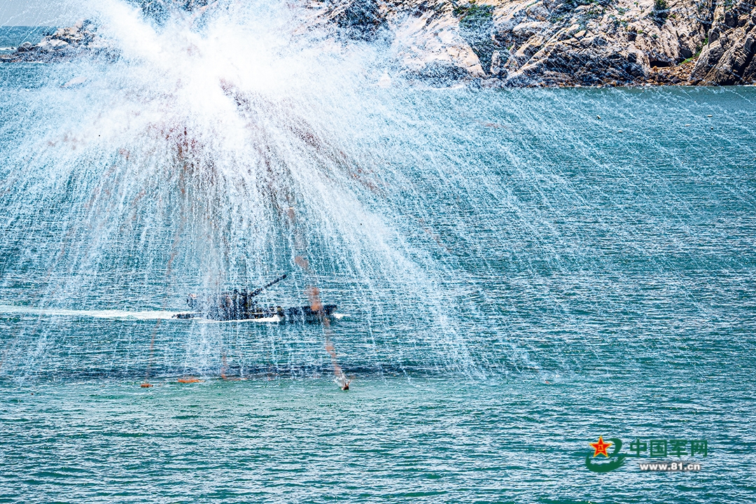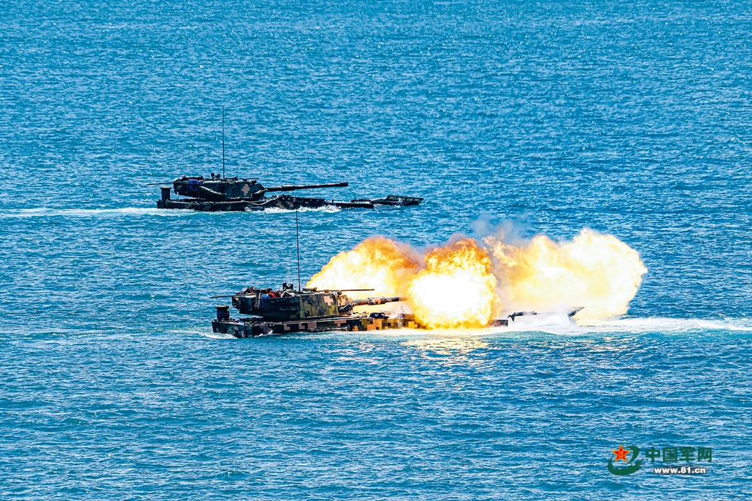 “发现‘敌’装甲目标!”某车车长通过车载电台向指挥所上报“敌情”,同时要求炮手做好射击准备。指挥员研判战场态势后,果断下达作战指令。炮手迅速瞄准锁定目标,一枚枚炮弹破膛而出。霎时,海上火光冲天,硝烟弥漫。