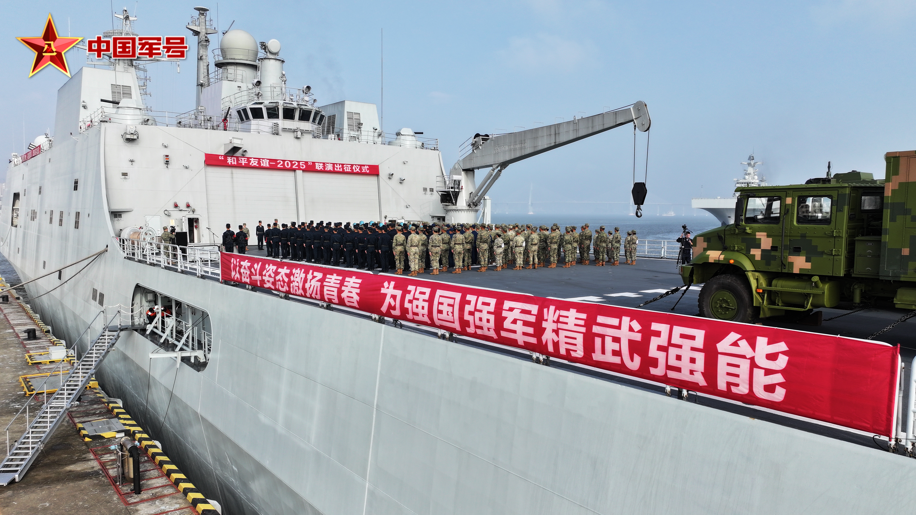 中国军号湛江10月8日电 王豪、记者赖瑜鸿报道:根据年度军事合作计划,10月15日至23日,中马两军将在马来西亚及其附近海域举行“和平友谊—2025”联合演习。今天上午,中方参演部队分别从湛江、三亚、香港三地军港出征,通过海上输送方式前往马来西亚。