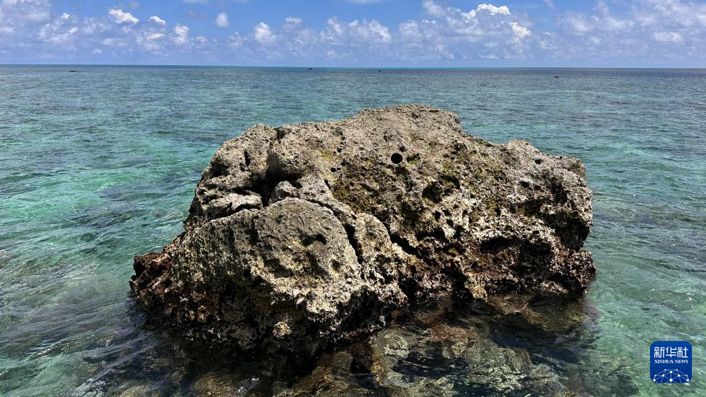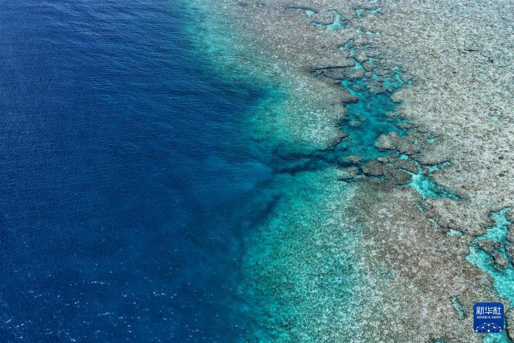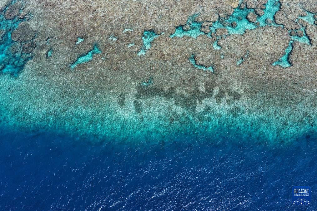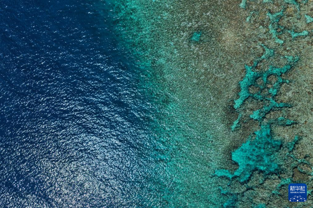 10月2日拍摄的黄岩岛礁盘与潟湖接合处。新华社发